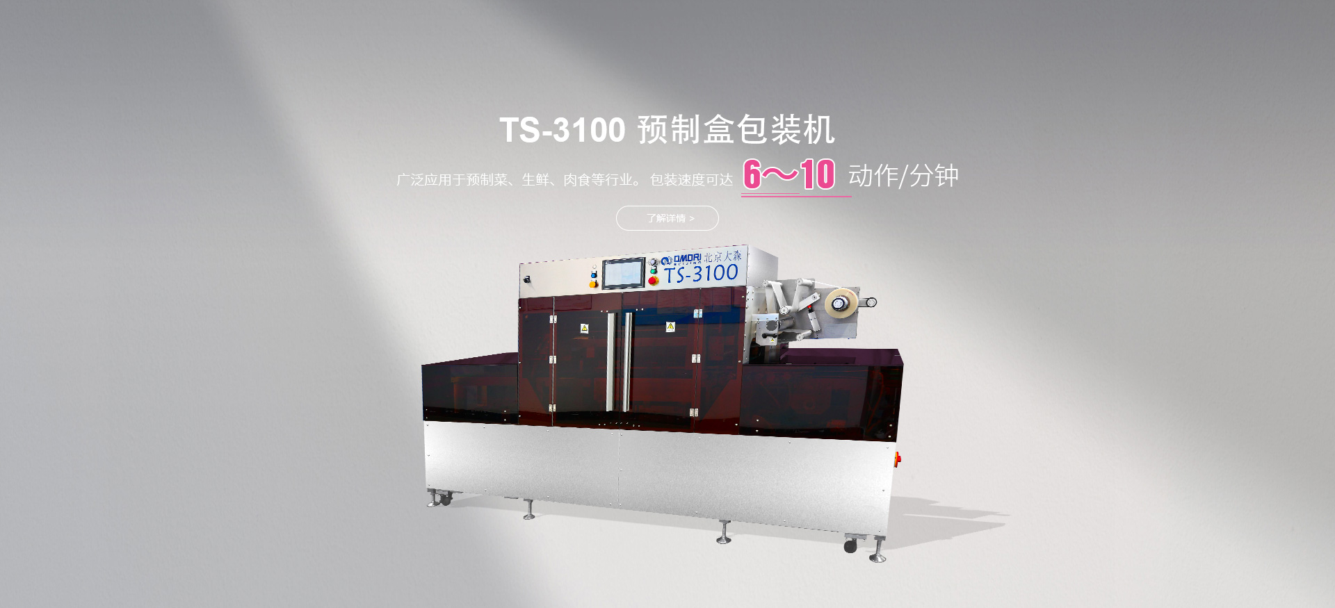 北京大森包裝機(jī)械有限公司北京大森承繼總部日本大森機(jī)械工業(yè)株式會(huì)社的優(yōu)勢(shì)資源和先進(jìn)技術(shù),先后開(kāi)發(fā)和引進(jìn)了全自動(dòng)枕式包裝設(shè)備、高速裝箱裝盒設(shè)備、拉伸膜和自粘膜包裝設(shè)備、各式理料線(xiàn)和其他輔助設(shè)備,為客戶(hù)提供最符合產(chǎn)品實(shí)際需求的一體化、個(gè)性化整體包裝解決方案與設(shè)備,實(shí)現(xiàn)從產(chǎn)品研發(fā)、采購(gòu)、生產(chǎn)、售后一站式整體服務(wù),廣泛應(yīng)用于方便食品、休閑食品、冷凍食品、海產(chǎn)品、醫(yī)藥、生鮮果蔬、烘焙等各個(gè)行業(yè)領(lǐng)域。