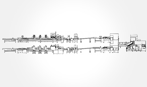 包裝段采用S-5000A型高速枕包機(jī),配合AF-4000智能理料皮帶,實(shí)現(xiàn)高速生產(chǎn)線的自動上料、自動包裝。裝箱段采用WDC-240D型高速裝箱機(jī),實(shí)現(xiàn)在高速生產(chǎn)線下穩(wěn)定的自動集積、自動裝箱。